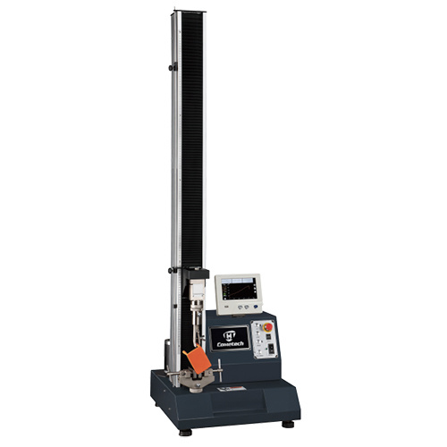 QC-508D2は卓上型で最大荷重2kNの万能試験機で、7インチタッチ式ディスプレイを標準装備します。D2コントローラと7インチディスプレイはPCを必要とせず、装置単体で制御とデータ解析が行えます。最大1,100mmの試験ストロークは大変形の引張試験に対応します。